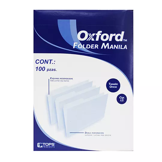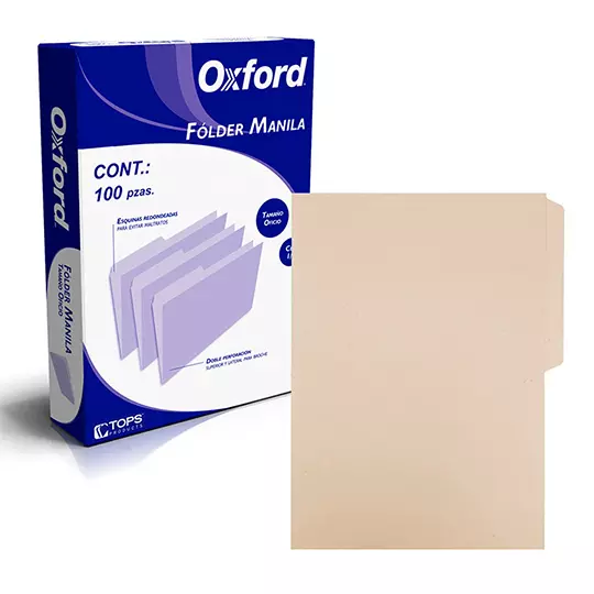 Folder manila Oxford oficio color crema ceja 1/2 caja con 100 pzas