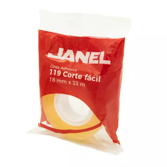 Cinta adhesiva línea 119 transparente JANEL 18x33 corte fácil 1 pieza