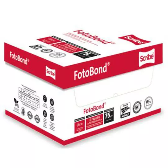 Caja de papel bond Fotobond Scribe tamaño oficio 95% de blancura 75gr.