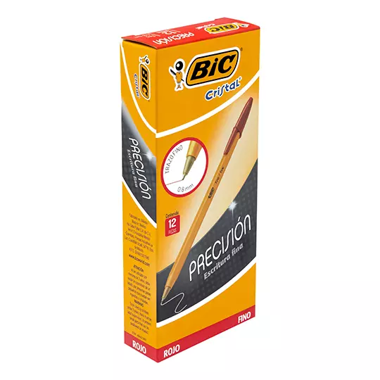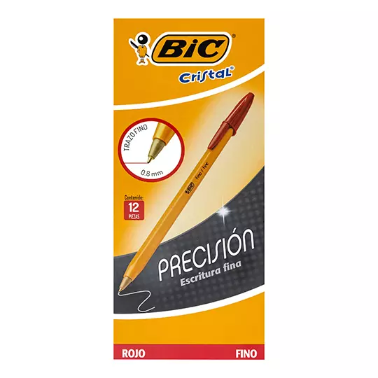 Bolígrafo BIC cristal rojo punto fino 0.8 mm caja con 12 piezas