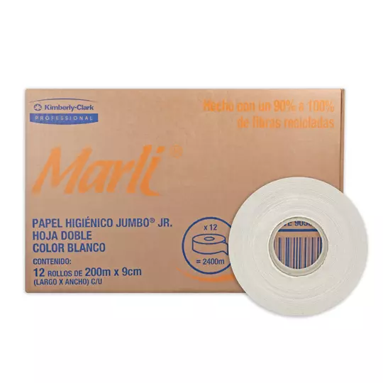 Papel higiénico blanco Marli, caja c/12 bobinas 200m jumbo jr mod 90509