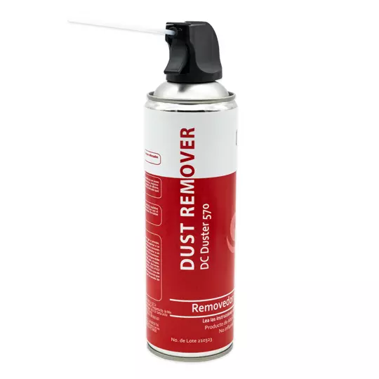 Descripción Aire comprimido de 570ml envasado en bote de acero reforzado de alta seguridad, gas seco de alta pureza, libre de humedad, no inflamable, no tóxico, no daña plásticos, no mancha, 140/150 libras de pre